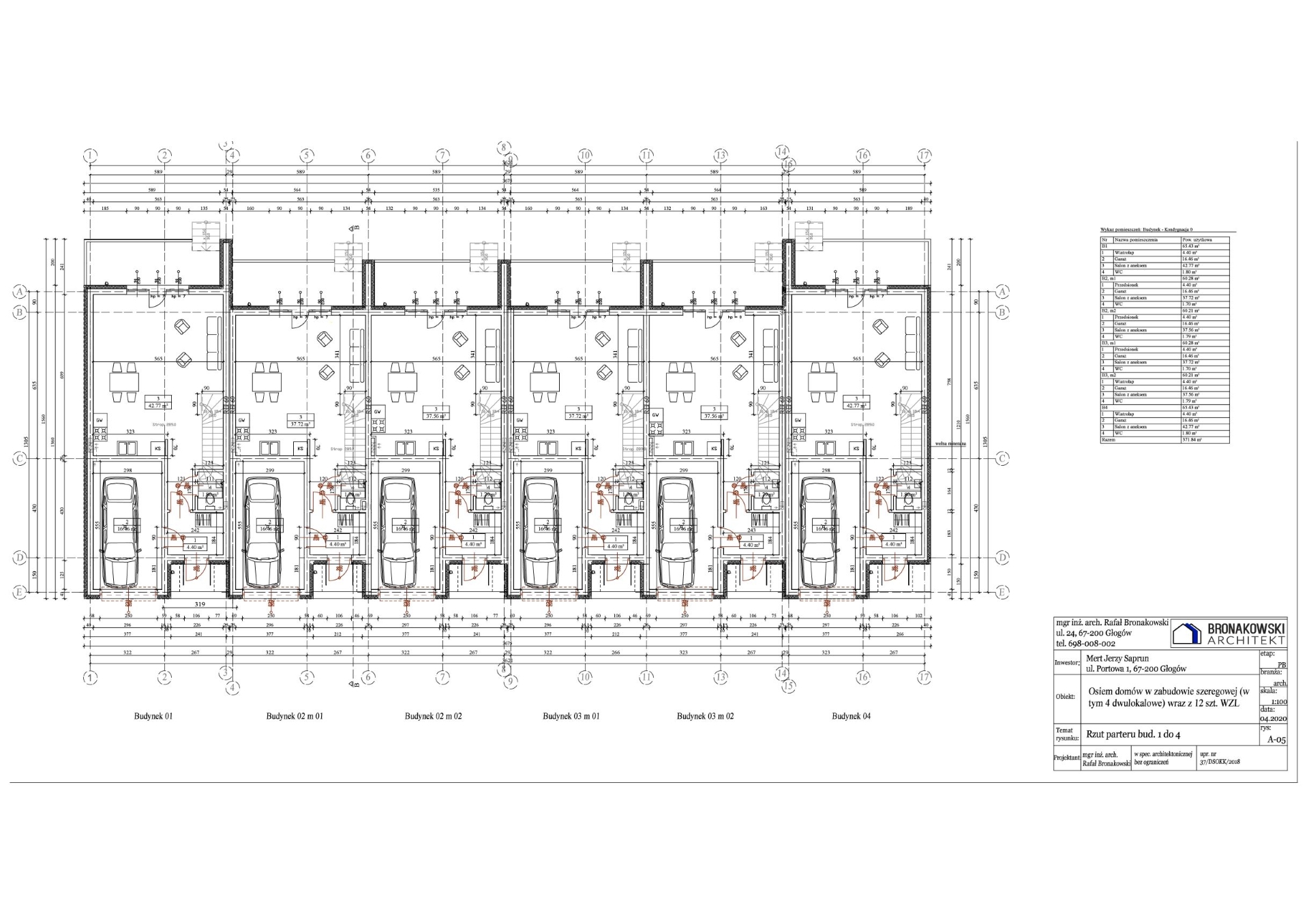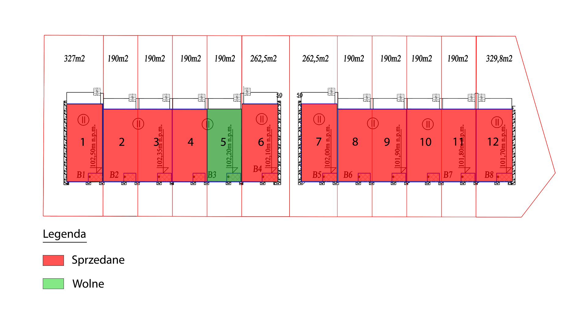 Powierzchnia użytkowa dwu poziomowych nieruchomości będzie wynosiła ok. 120 m2 na działce w środkowym segmencie o powierzchni 190 m2. Domy skrajne powstaną o powierzchni 130 m2, na działkach o powierzchni 265 m2.