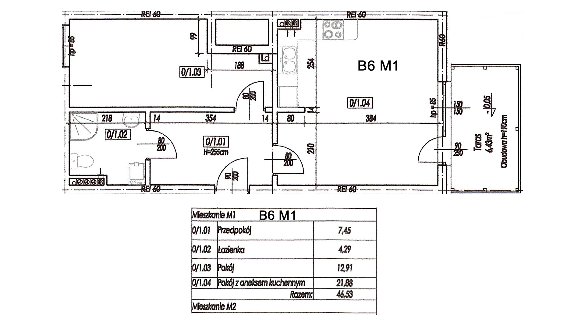 | M1 K6 | 46,53 m2 | parter | 2 | taras: 6,43 m2 | ‑ | tak | zapytaj o cenę | wolne | |