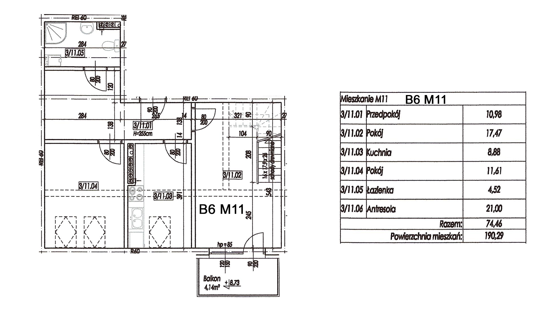 | M11 K6 | 74,46 m2 | trzecie | 3 | balkon: 4,14 m2 | 21 m2 | nie | zapytaj o cenę | wolne | |