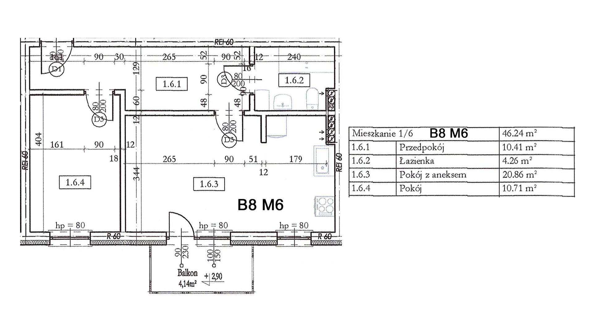 | M6 K8 | 46,24 m2 | pierwsze | 2 | balkon: 4,14 m2 | ‑ | tak | zapytaj o cenę | sprzedane | |